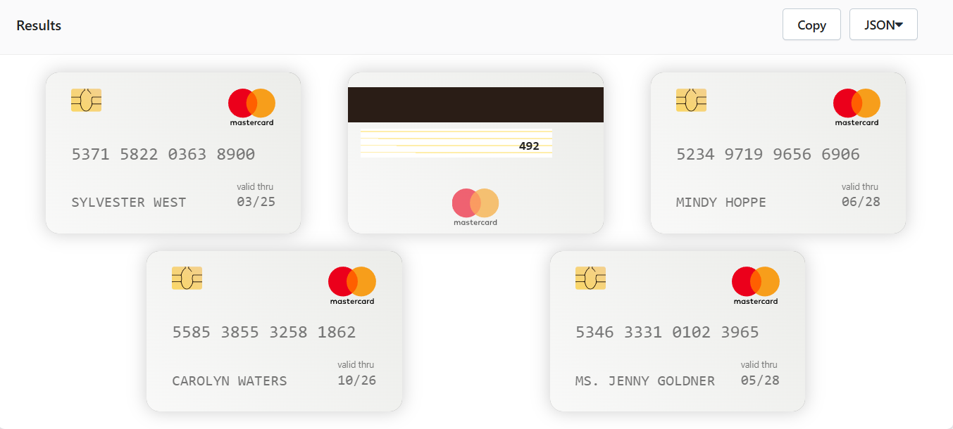 Choose from various card types such as Visa, MasterCard, or American Express based on your testing needs. - Generate the Card