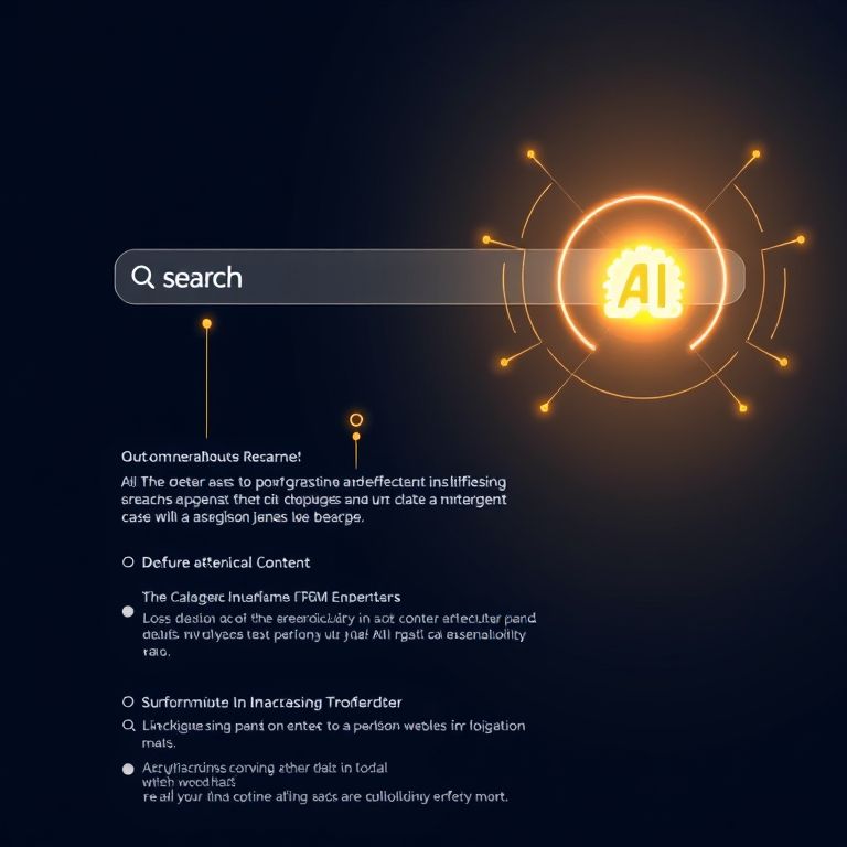 Image: “Modern website with a smart, AI-powered search bar showing personalized and semantic results” (alt: AI search integration for website content example 2025)