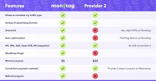 - Monetag: Known for its user-friendly interface, Monetag focuses on providing small and medium-sized websites with a range of monetization options, including display ads, affiliate marketing, and sponsored content. It uses smart ad placement technology to optimize revenue.